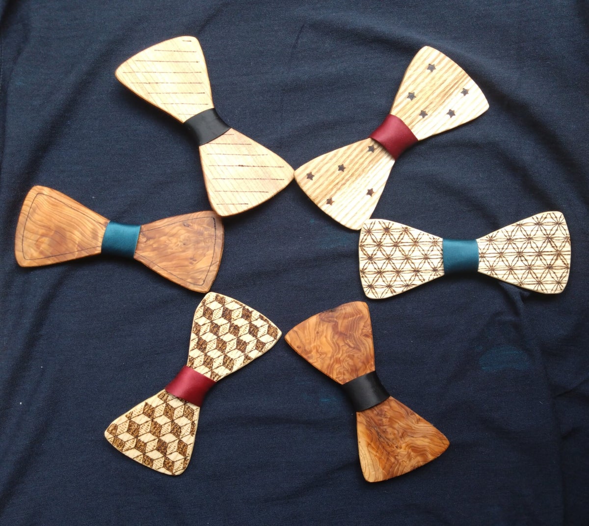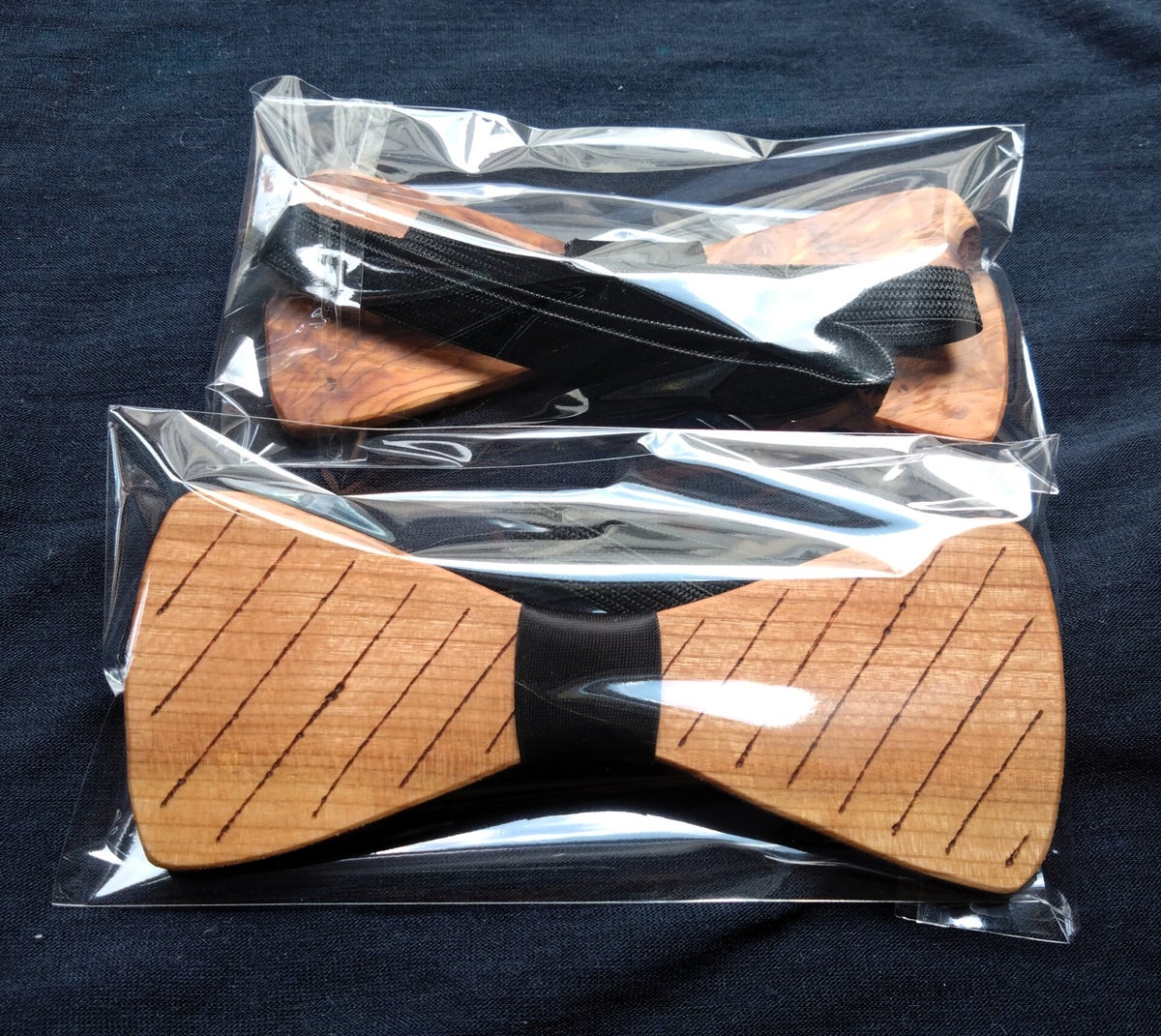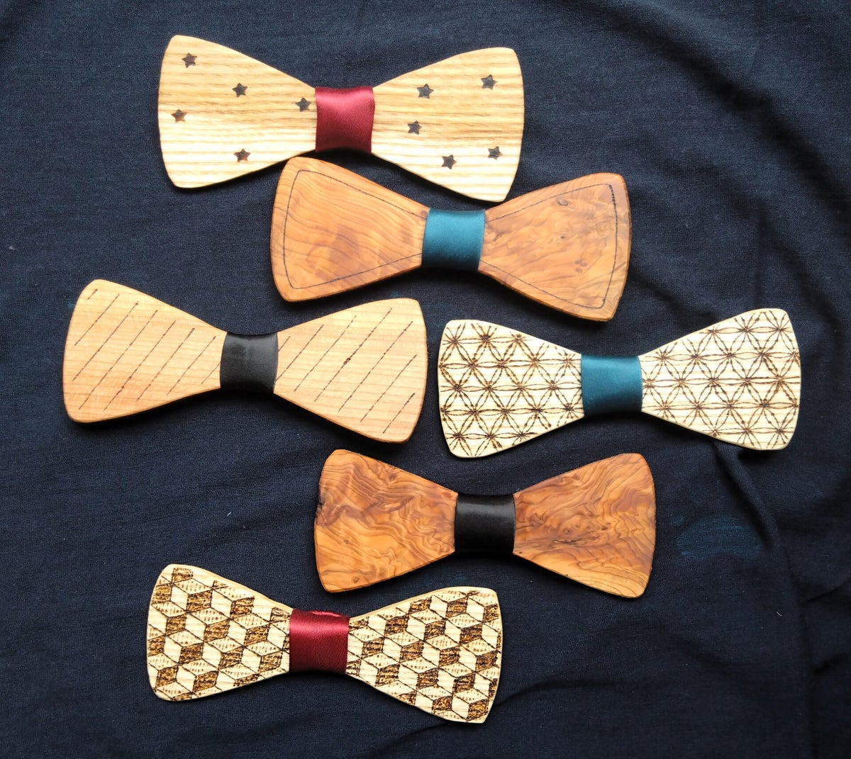 Ein elegantes Accessoire und echter Hingucker auf jeder Party mit und ohne Dresscode! Die handgemachten Fliegen aus verschiedenen Holzarten und mit liebevoll gebrannten Details kommen mit größenverstellbarem Halsgummi mit Clipverschluss. Die Farbe des Satinbandes kann bei der Bestellung noch anders gewünscht werden. Bitte Fliegenmodell beim Kauf mit angeben.